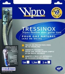#Tuyaux durée de vie 10 ans Tressinox Gaz naturel longueur 2m. Conditionnement: Blister Wpro
